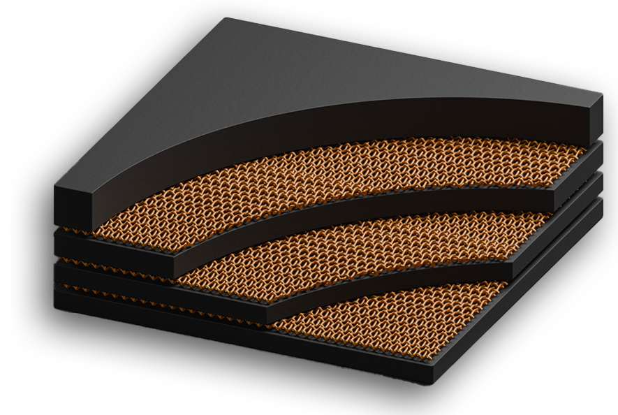 Trioflex has been designed in line with the modern MPC-trend (minimum ply concept) and can be used very successfully for medium up to the heaviest service conditions, adverse loading conditions and coarse materials. As its name implies, the Trioflex carcass consists of three extremely tough and resilient EP fabric plies that are impervious to moisture and have a low elongation. There is an extra tough rubber layer between the plies. This all adds up to outstanding levels of impact and tear resistance.